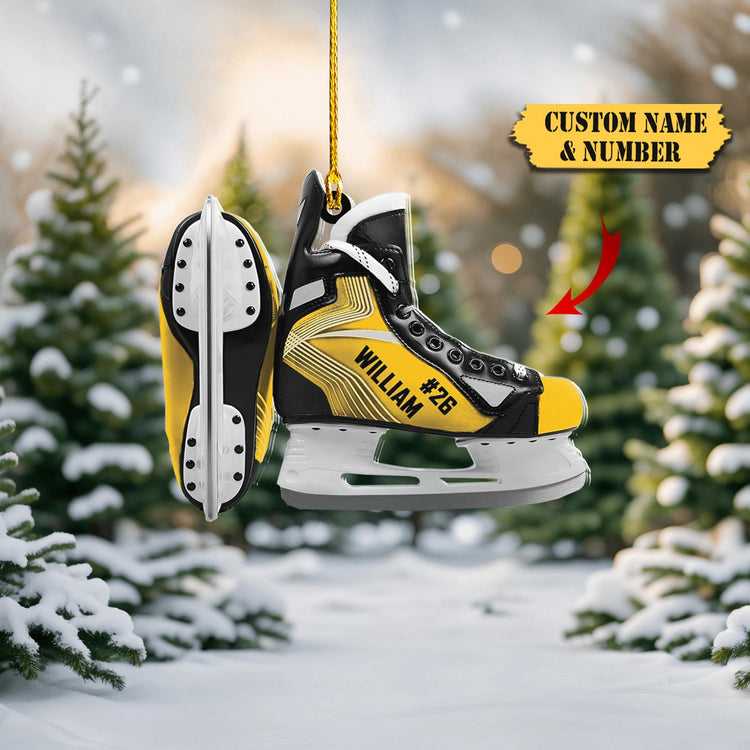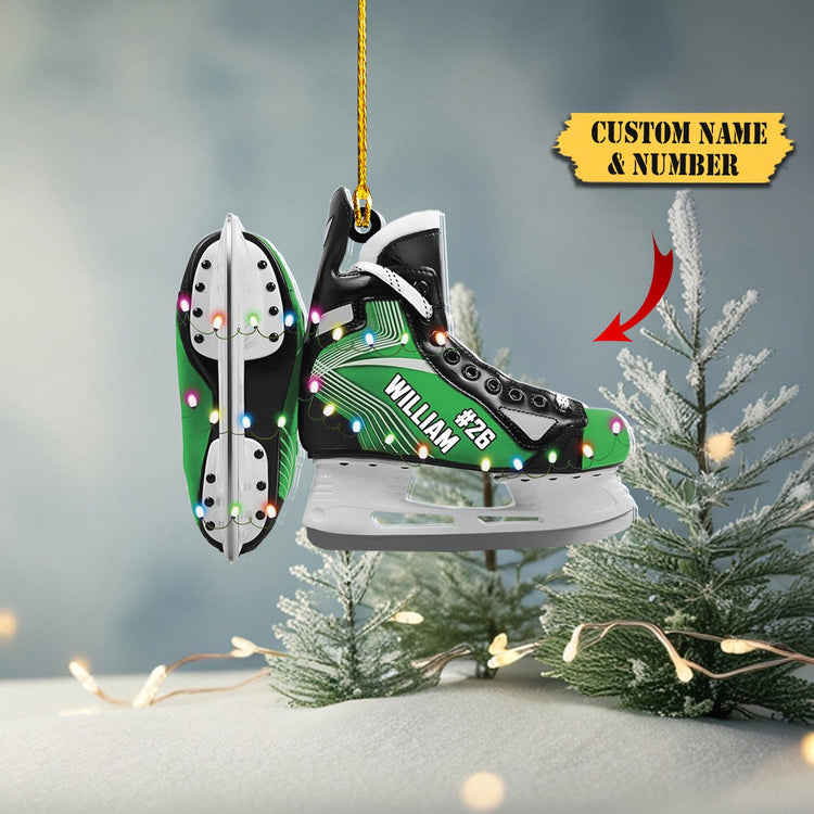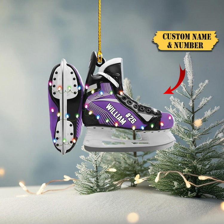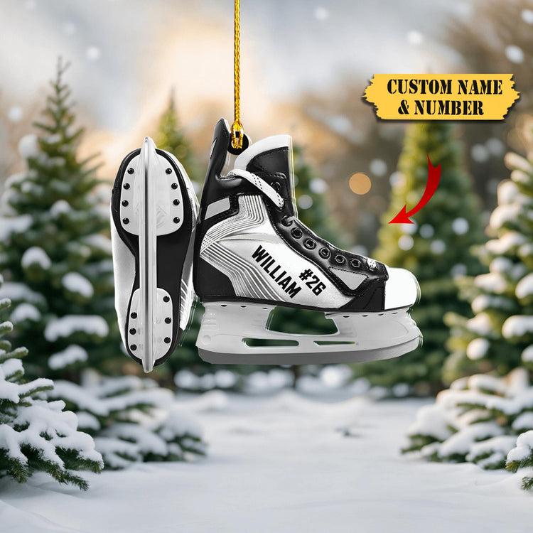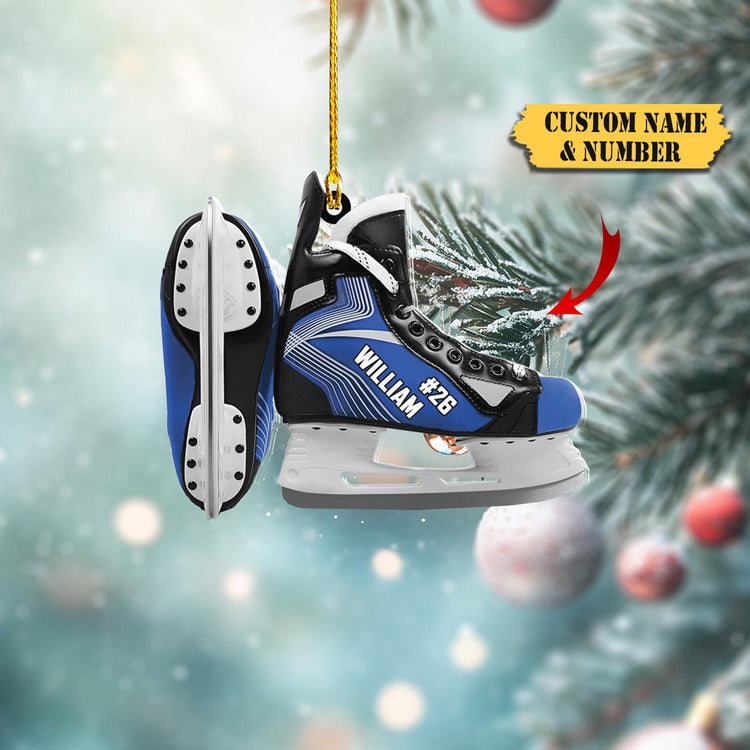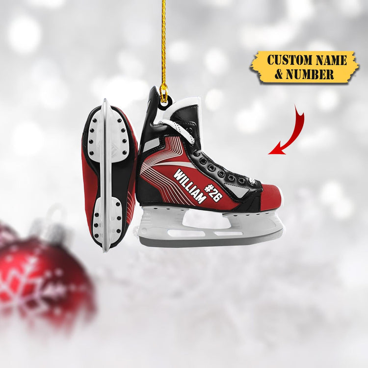 Custom Name Ice Hockey Skates Christmas Ornament , Christmas Tree Hanging Decor, Flat 2D Ornament Acrylic Gift For Hockey Lovers