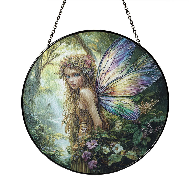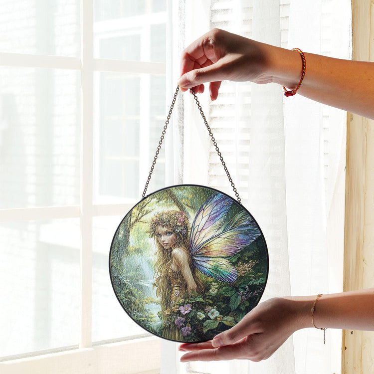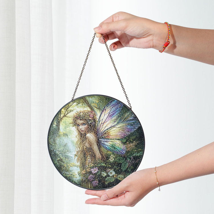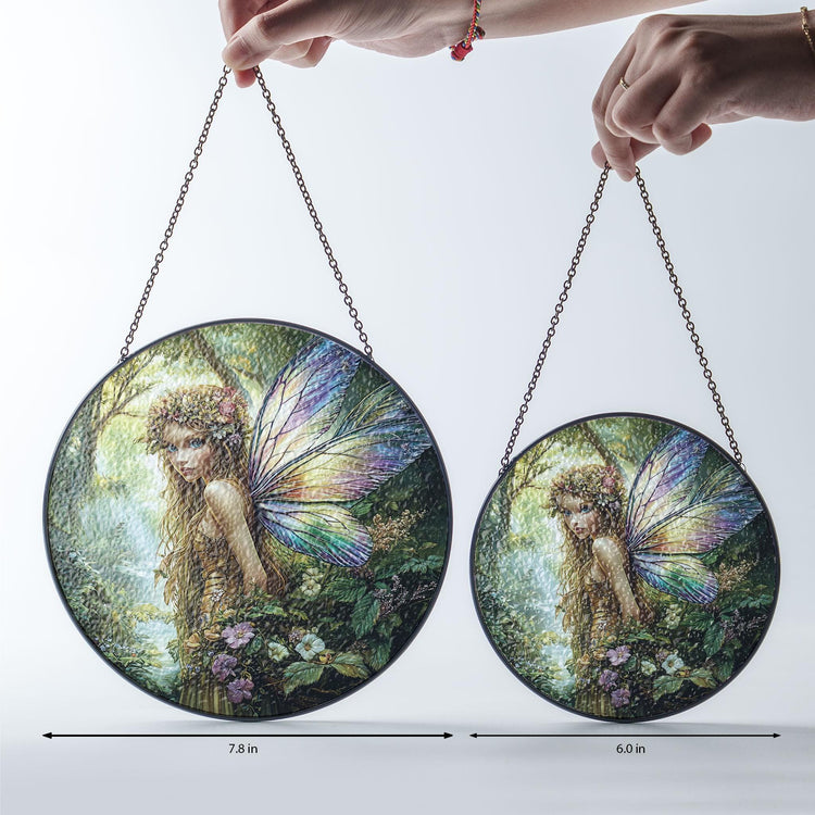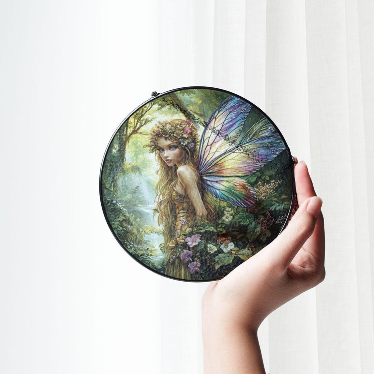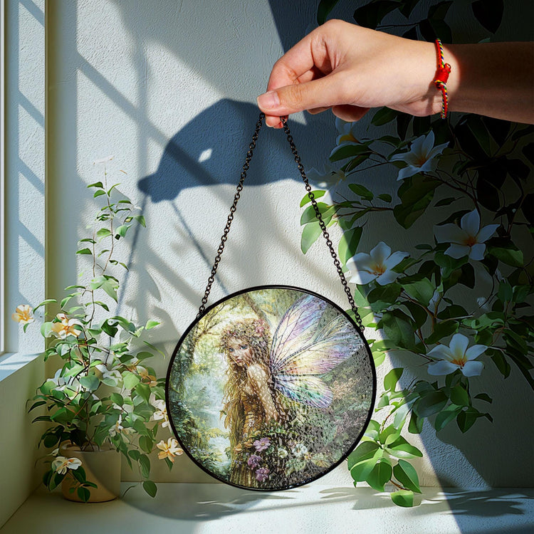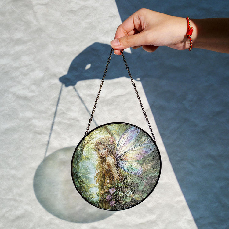 Home Flower Fairy Stained Glass Suncatcher, Gift For Mom, Fairies Flower Suncatcher, Gift For Mom, Fairies Lover Gift, Glass Window Hanging
