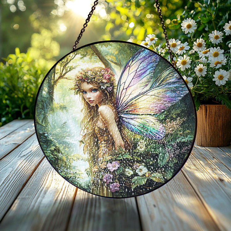 Flower Fairy Stained Glass Suncatcher, Gift For Mom, Fairies Flower Suncatcher, Gift For Mom, Fairies Lover Gift, Glass Window Hanging