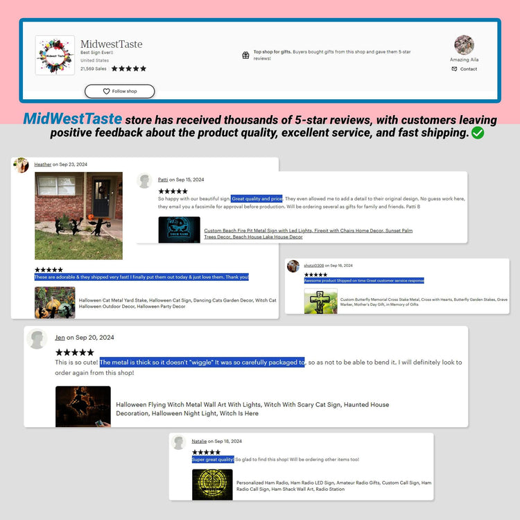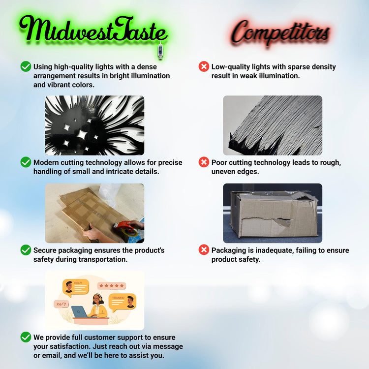We laser-cut each sign with top-of-the-line laser technology to ensure precise design. We powder coat each sign to give your sign a smooth and durable finish. Stay with you for years.