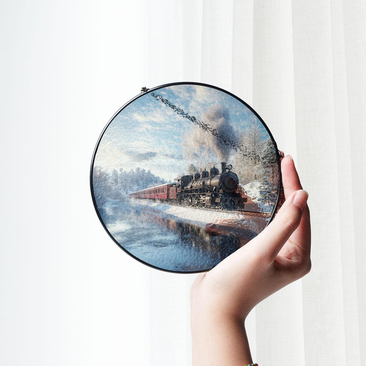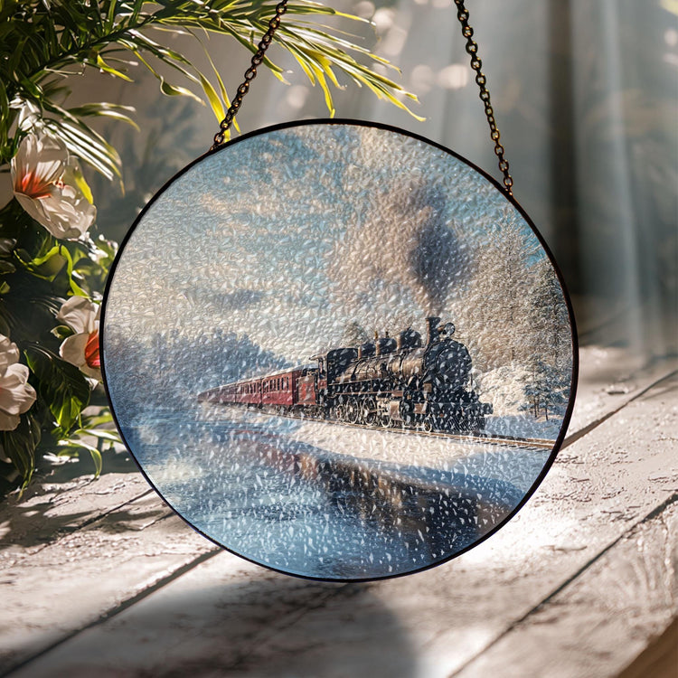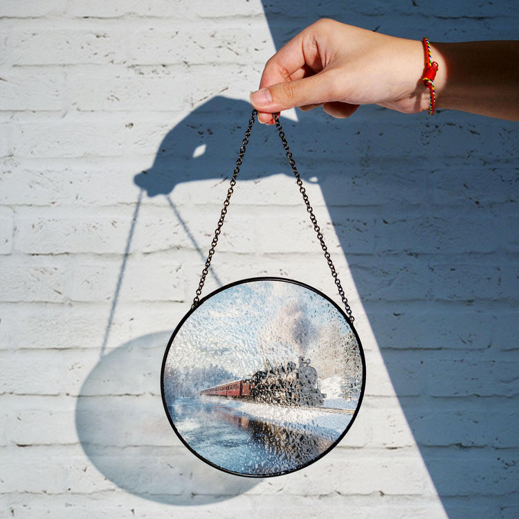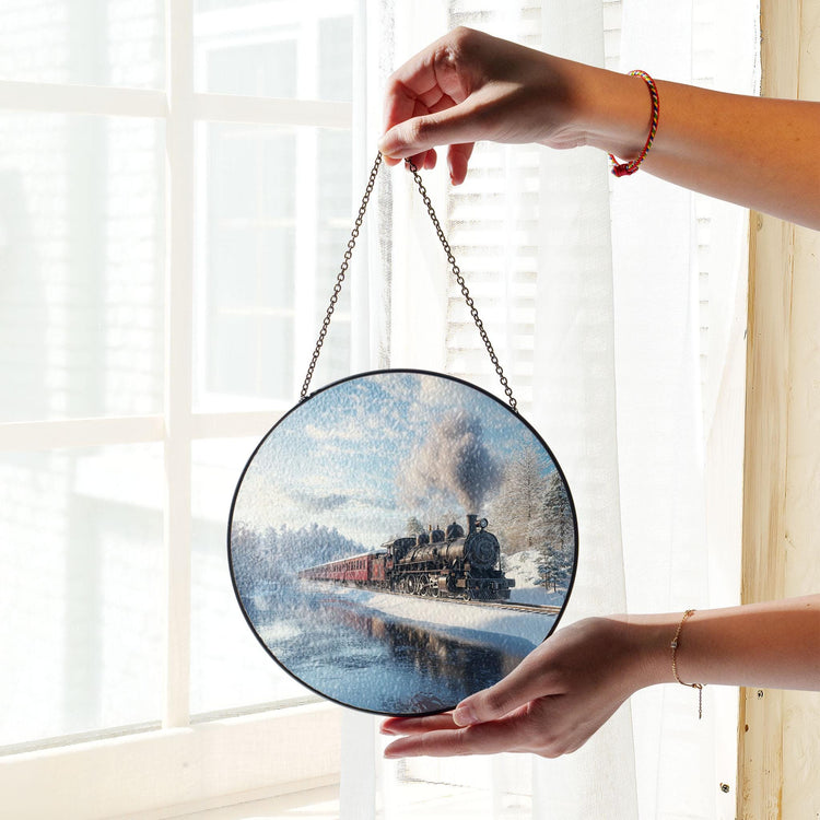 Winter Hgws Express Train Glass Suncatcher, Wizard School Acrylic Window Hanging, Magical Castle Bookish Wall Decor Book Lover Xmas Gift